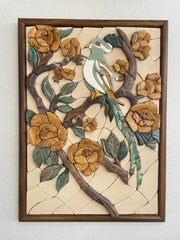 Flowers & Parrot Marble Mosaic 3D Wall Art (Natural Stone) 21 X 16.5 inches/ Handmade/ Gift